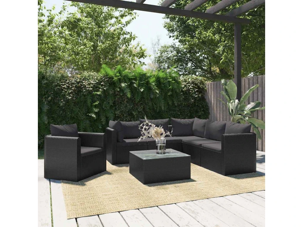 7dílná zahradní sedací souprava s poduškami polyratan černá [46552]