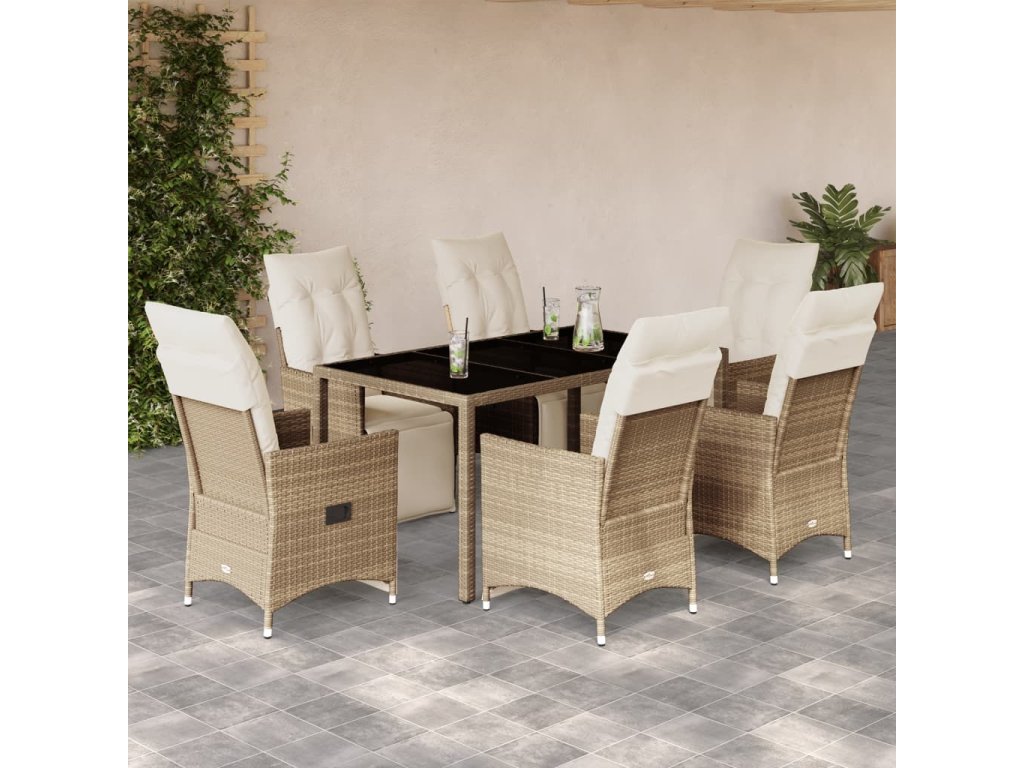 7dílný zahradní bistro set s poduškami béžový polyratan [3276940]