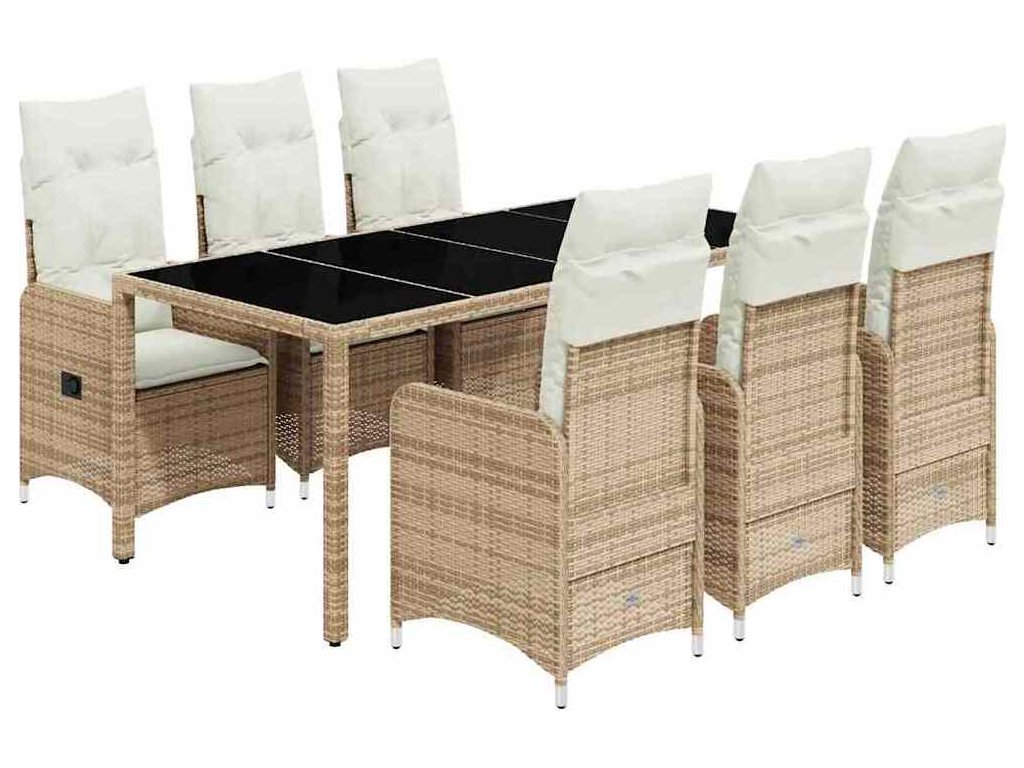 7dílný zahradní bistro set s poduškami béžový polyratan [3277101]