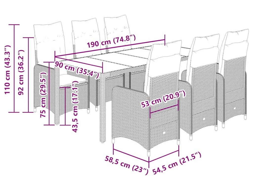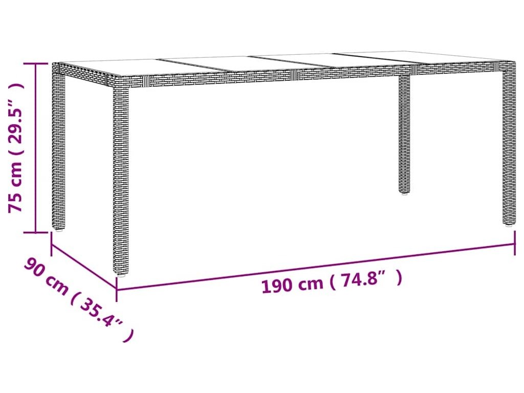 - Skleněná deska stolu: Deska venkovního stolu je zhotovena ze silného a odolného tvrzeného skla, takže ji snadno očistíte vlhkým hadříkem a zároveň do vašeho venkovního prostoru vnese nádech elegance.