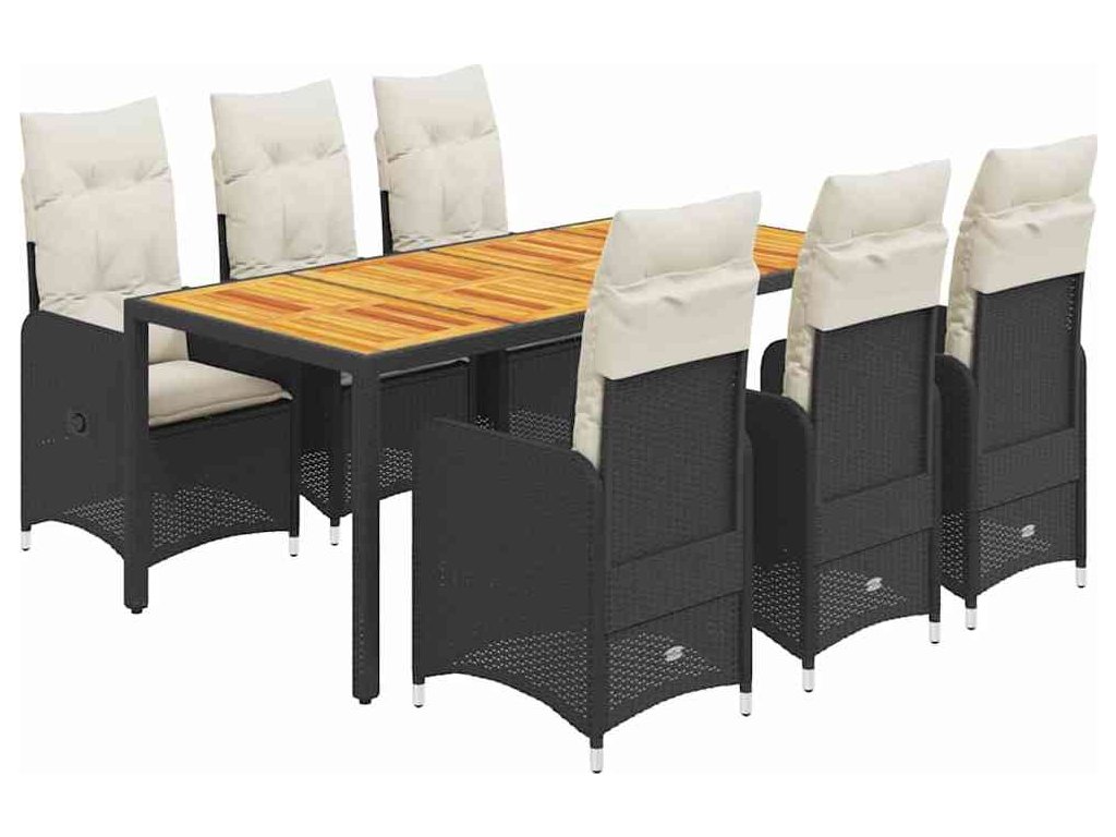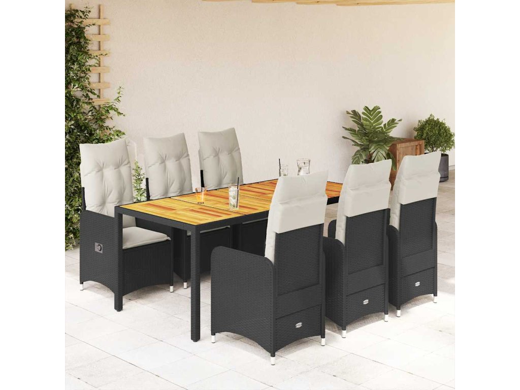 7dílný zahradní bistro set s poduškami černý polyratan [3276981]