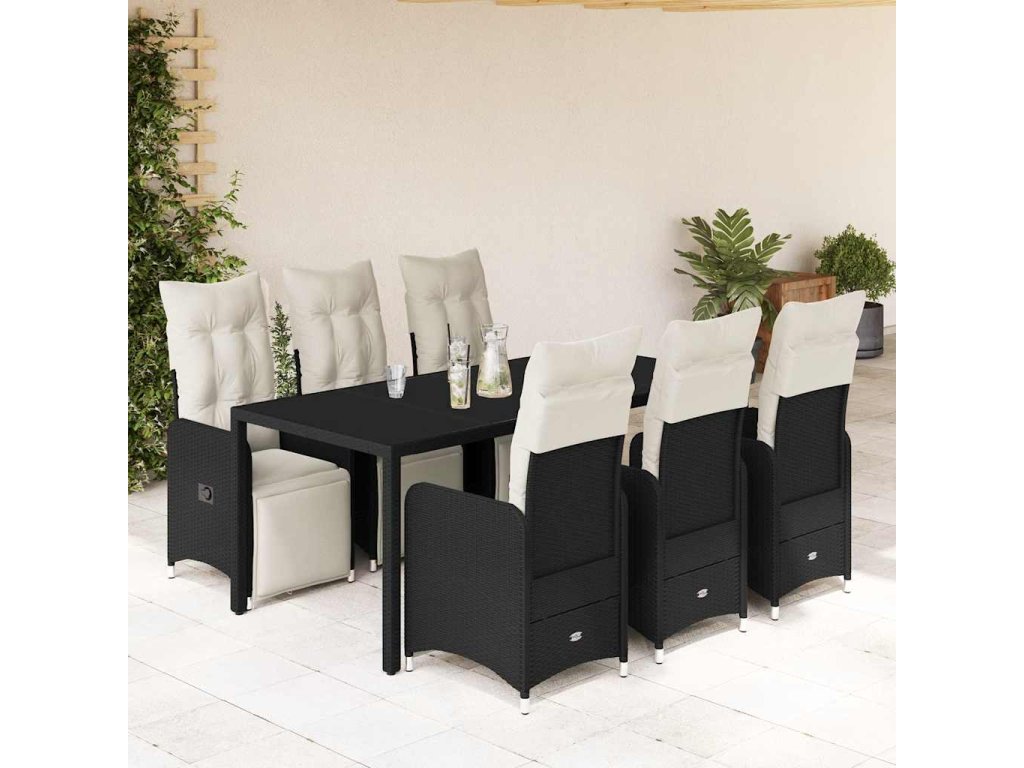7dílný zahradní bistro set s poduškami černý polyratan [3277139]