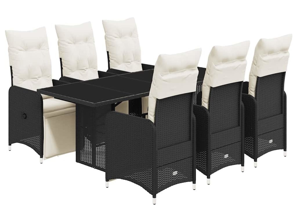 7dílný zahradní bistro set s poduškami černý polyratan [3277141]