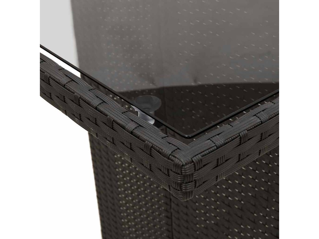 - Materiál: PE ratan, práškově lakovaná ocel, tvrzené sklo