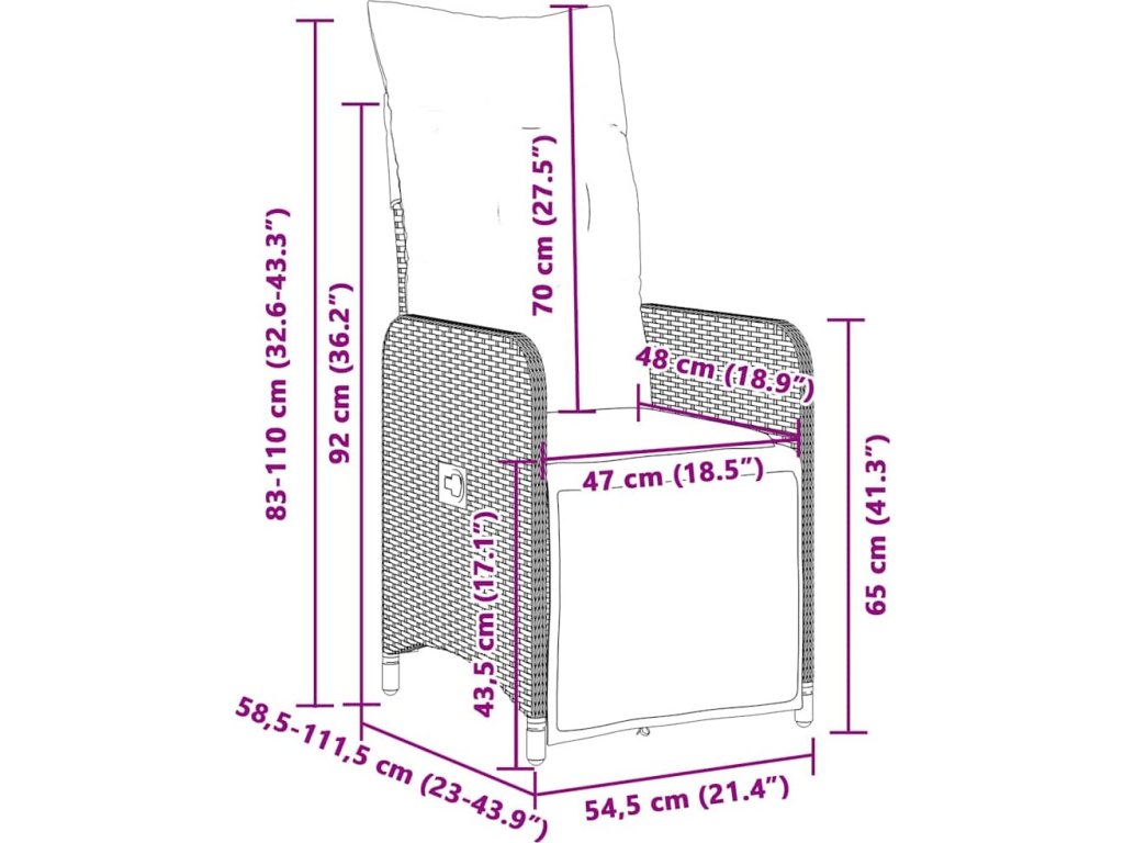 - Rozměry sklopeného křesla: 54,5 x 111,5 x 83 cm (Š x H x V)