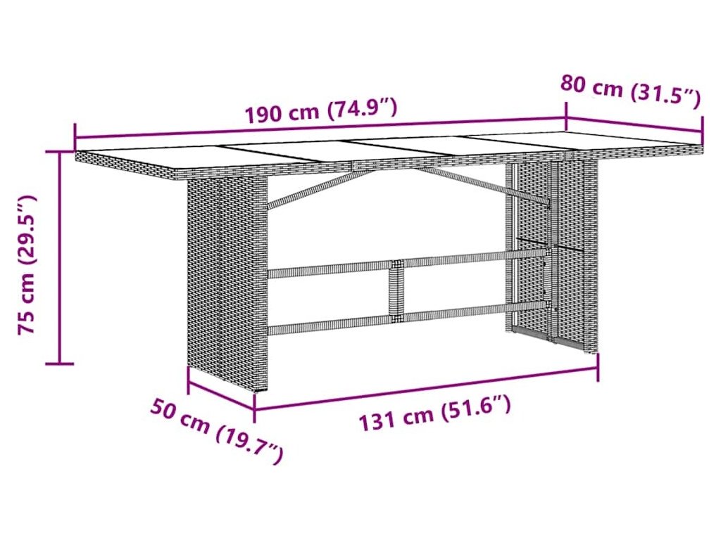 - Skleněná deska stolu: Deska venkovního stolu je zhotovena ze silného a odolného tvrzeného skla, takže ji snadno očistíte vlhkým hadříkem a zároveň do vašeho venkovního prostoru vnese nádech elegance.