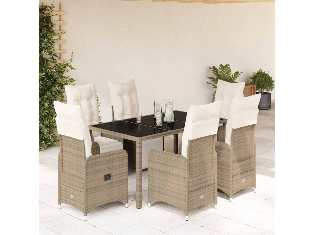 7dílný zahradní bistro set s poduškami hnědý polyratan [3277212]