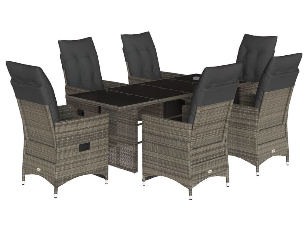 7dílný zahradní bistro set s poduškami šedý polyratan [3276899]