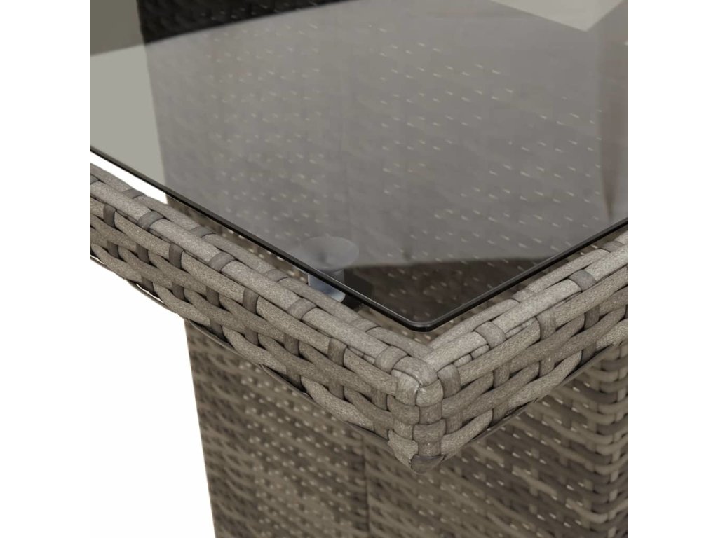 - Materiál: PE ratan, práškově lakovaná ocel, tvrzené sklo
