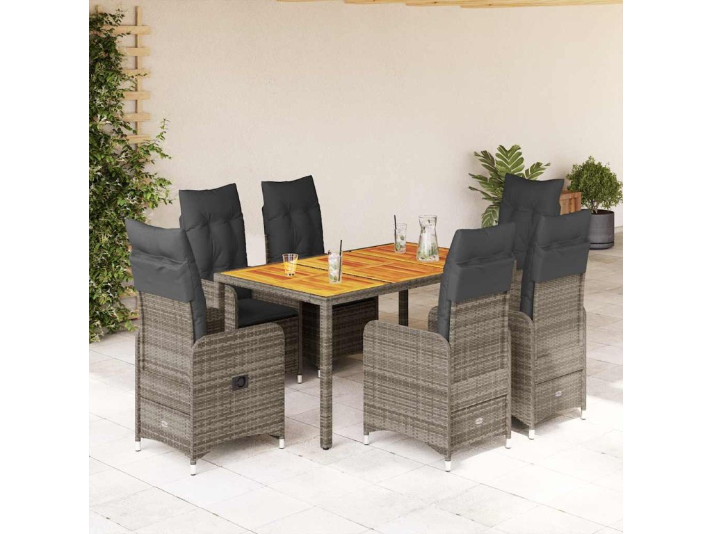 7dílný zahradní bistro set s poduškami šedý polyratan [3277024]