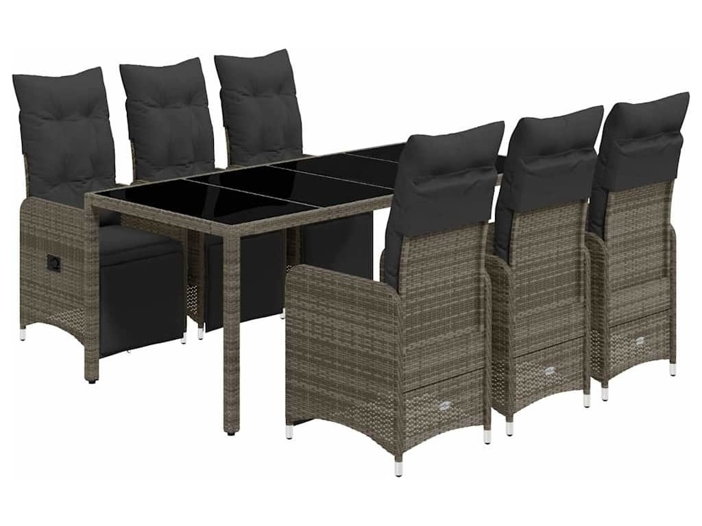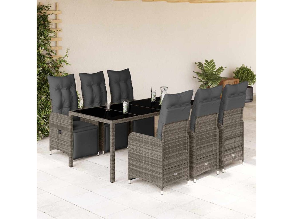 7dílný zahradní bistro set s poduškami šedý polyratan [3277169]