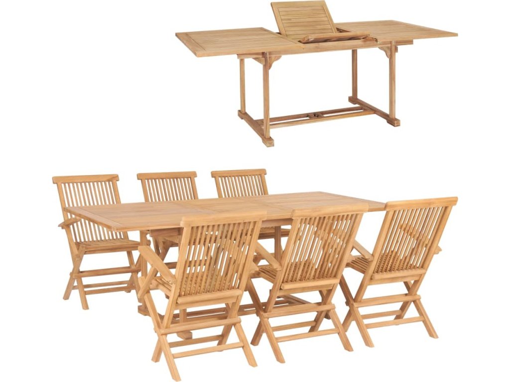 7dílný zahradní jídelní set 150–200 x 100 x 75 cm teakové dřevo [44676]
