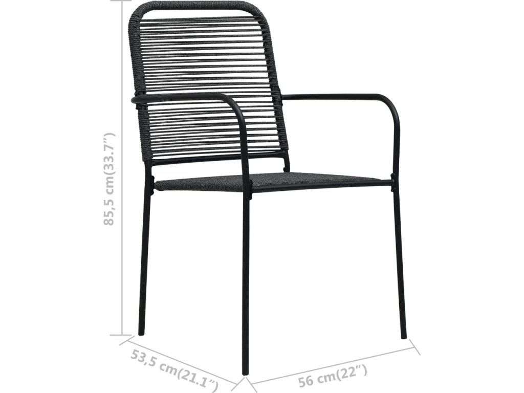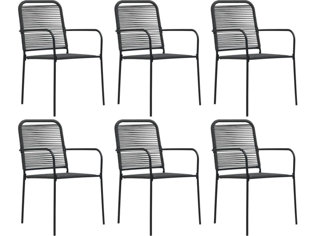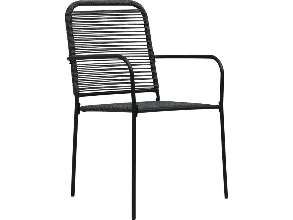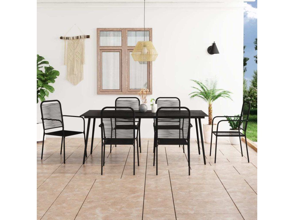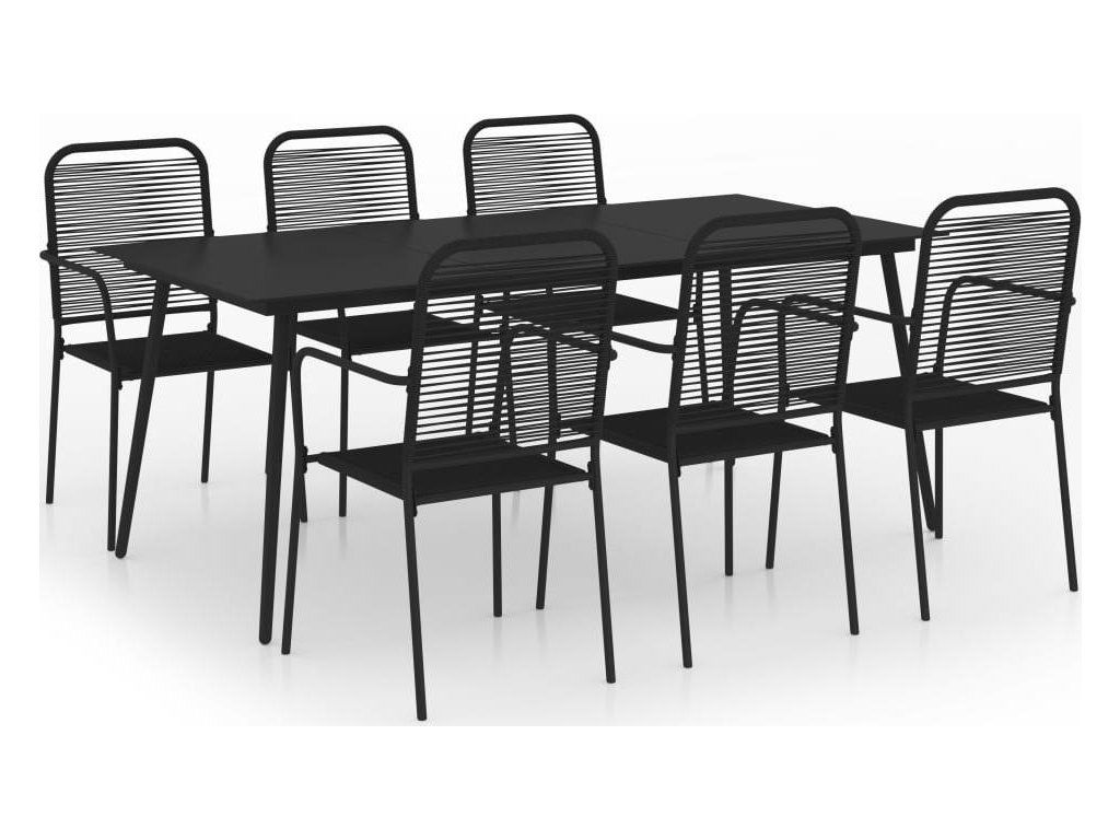 7dílný zahradní jídelní set bavlněné provázky a ocel černý [3058281]