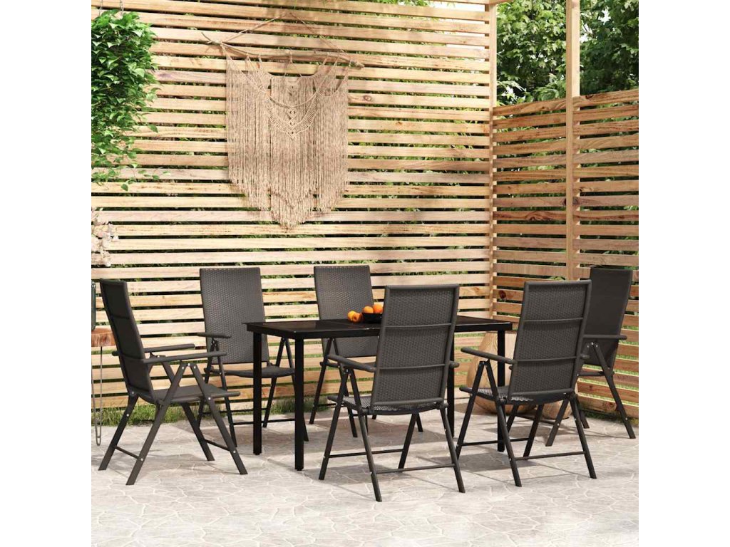 7dílný zahradní jídelní set černý [3099104]