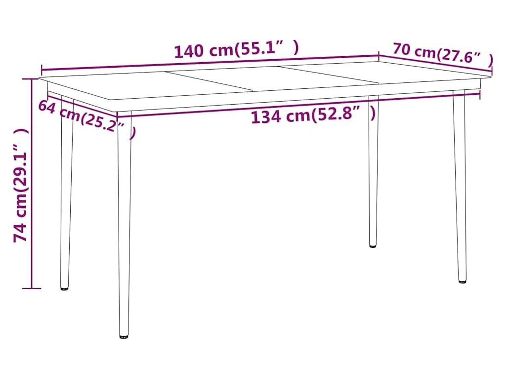 - Rozměry: 140 x 70 x 74 cm (D x Š x V)