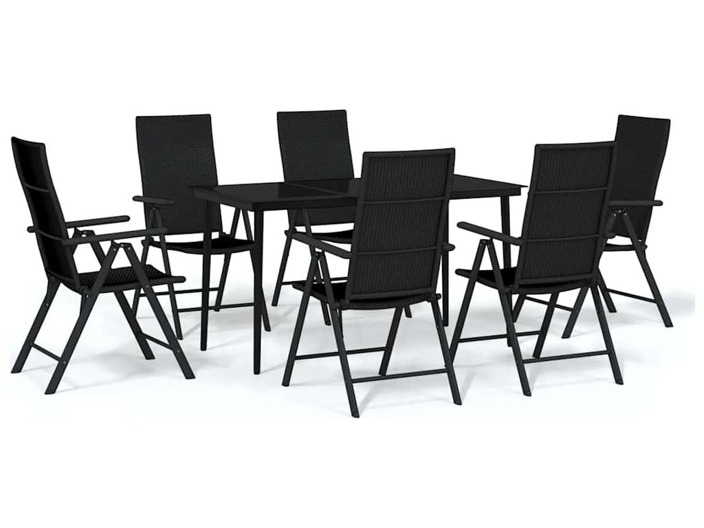 Tento zahradní jídelní stůl je vyrobený z ocelového rámu s práškovým povlakem, takže je robustní a stabilní pro každodenní venkovní použití. Hladká skleněná stolní deska se snadno čistí vlhkým hadříkem. Navíc se skvěle hodí k servírování jídla či pití a k vystavování různých dekorací. Židle na terasu jsou vyrobené z PE ratanu, takže jsou lehké a voděodolné. Opěradla židlí lze navíc sklopit do 7 různých poloh, takže snadno najdete polohu, ve které se vám bude sedět nejpohodlněji. Pokud židle právě nepoužíváte, můžete je složit, aby vám zbytečně nepřekážely.