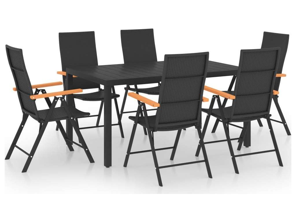 7dílný zahradní jídelní set černý a hnědý [3060085]
