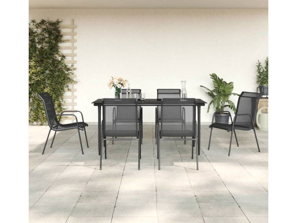 7dílný zahradní jídelní set černý ocel a textilen [3200687]
