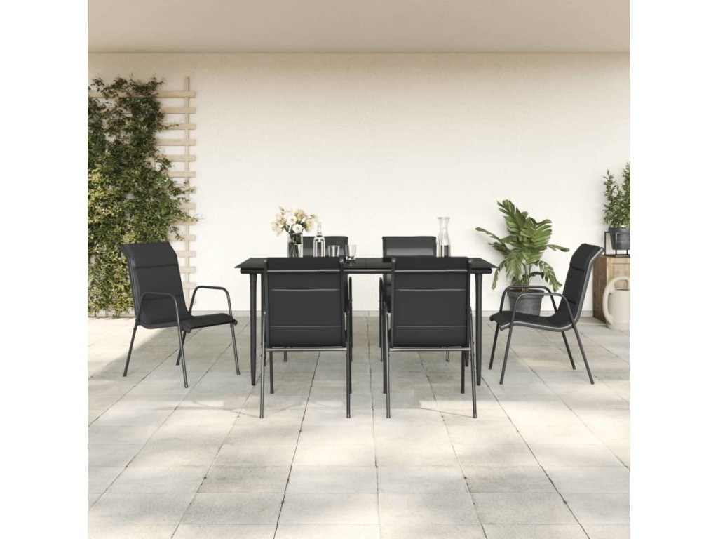 7dílný zahradní jídelní set černý ocel a textilen [3200707]