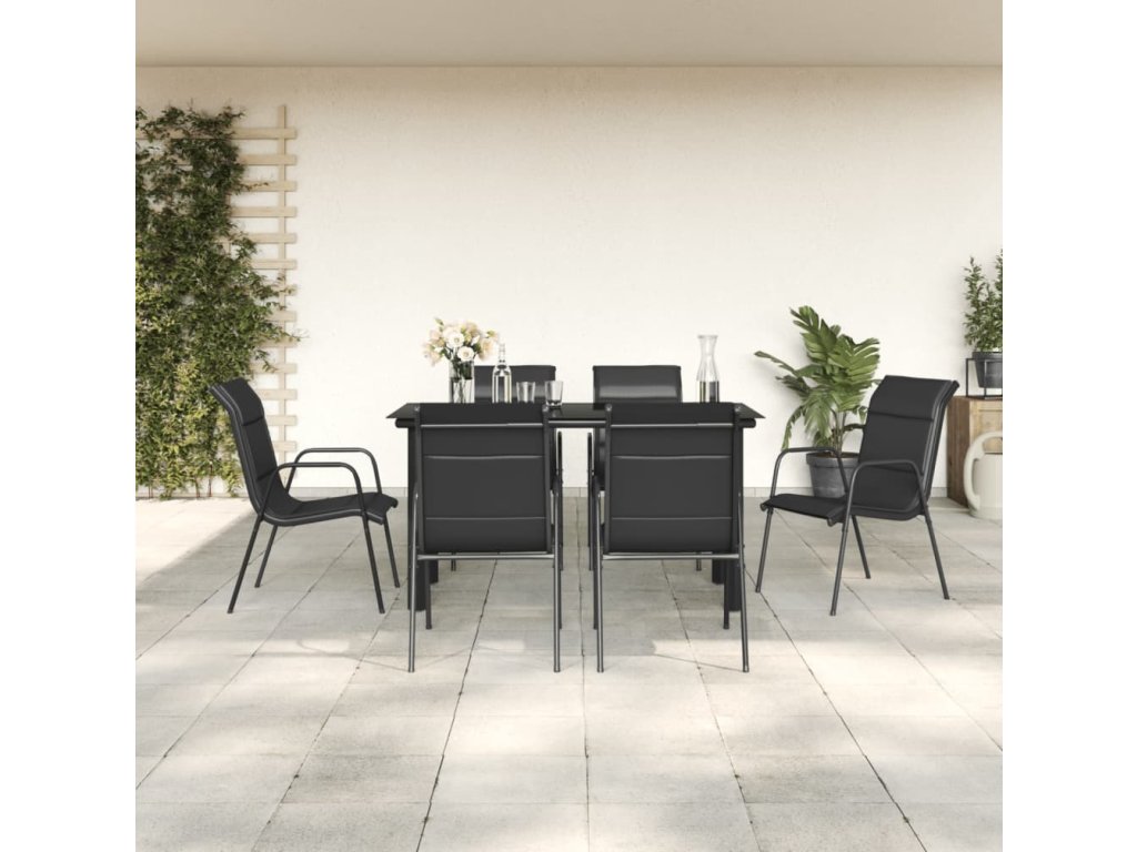7dílný zahradní jídelní set černý ocel a textilen [3200713]
