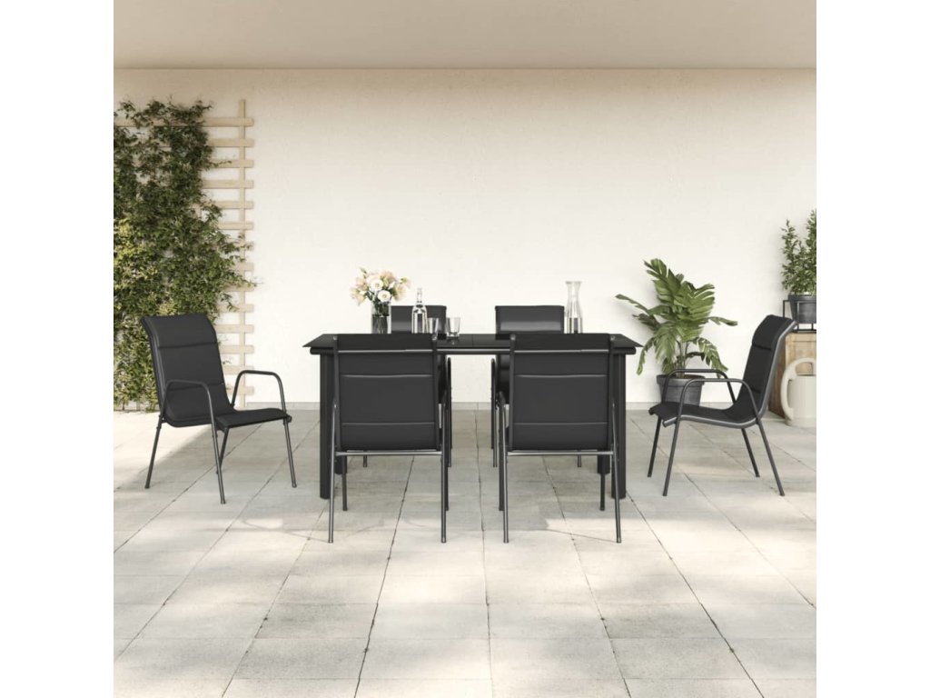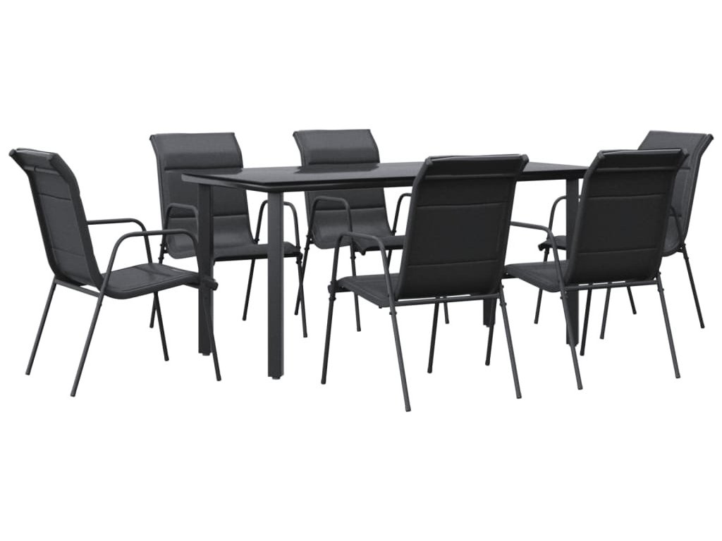 7dílný zahradní jídelní set černý ocel a textilen [3200715]