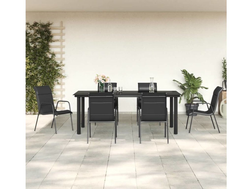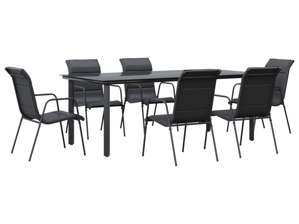7dílný zahradní jídelní set černý ocel a textilen [3200716]
