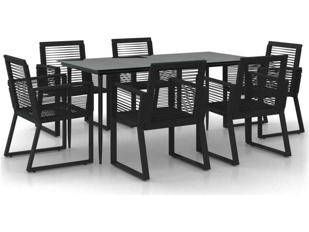 7dílný zahradní jídelní set černý PVC ratan [3156549]