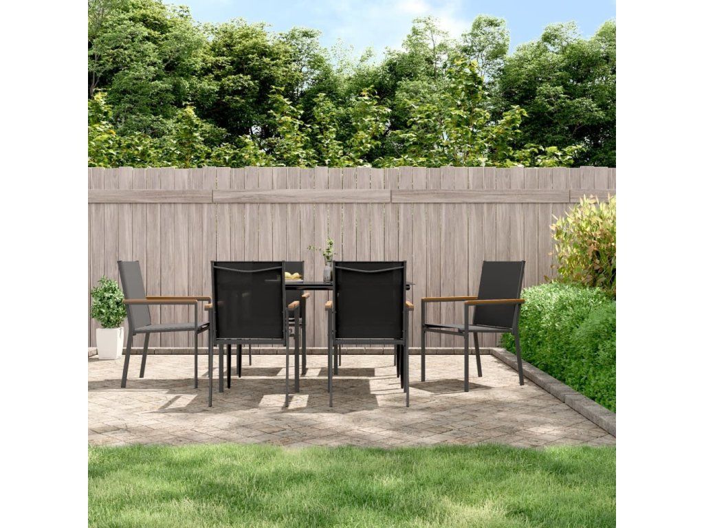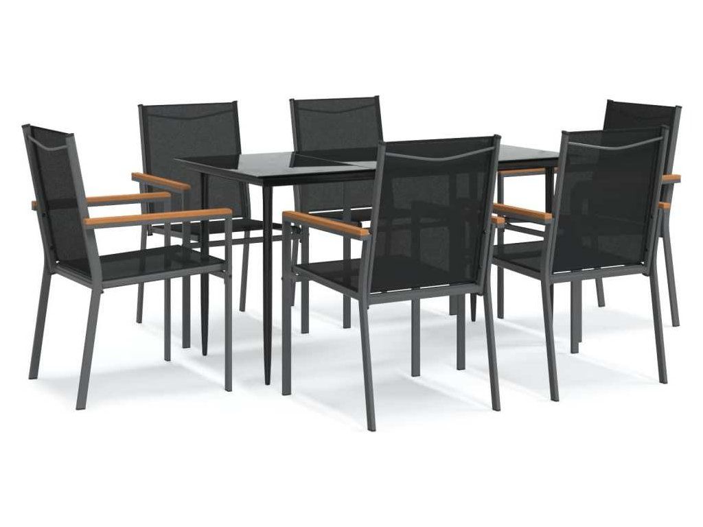 7dílný zahradní jídelní set černý textilen a ocel [3187036]