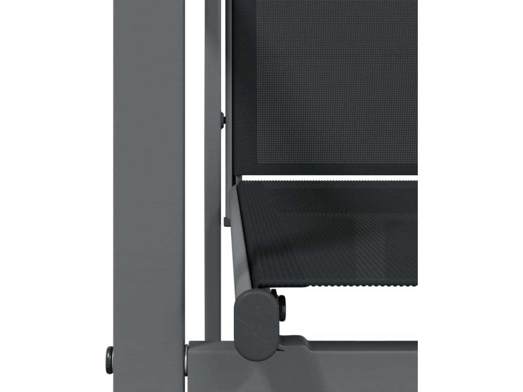 - Materiál: textilen, práškově lakovaná ocel, WPC