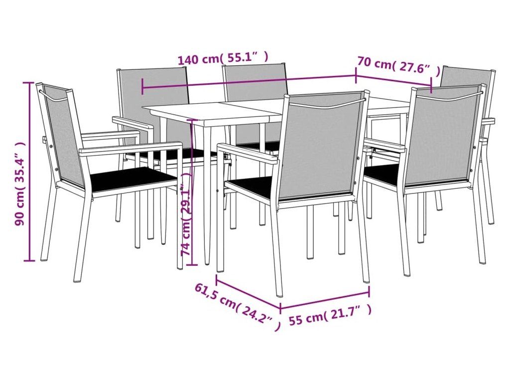 - Robustní a stabilní rám: Jelikož má ocelové rámy, je tento jídelní set robustní a stabilní pro každodenní venkovní použití.