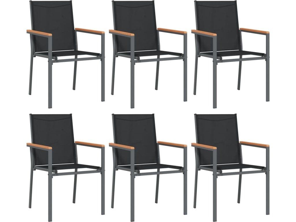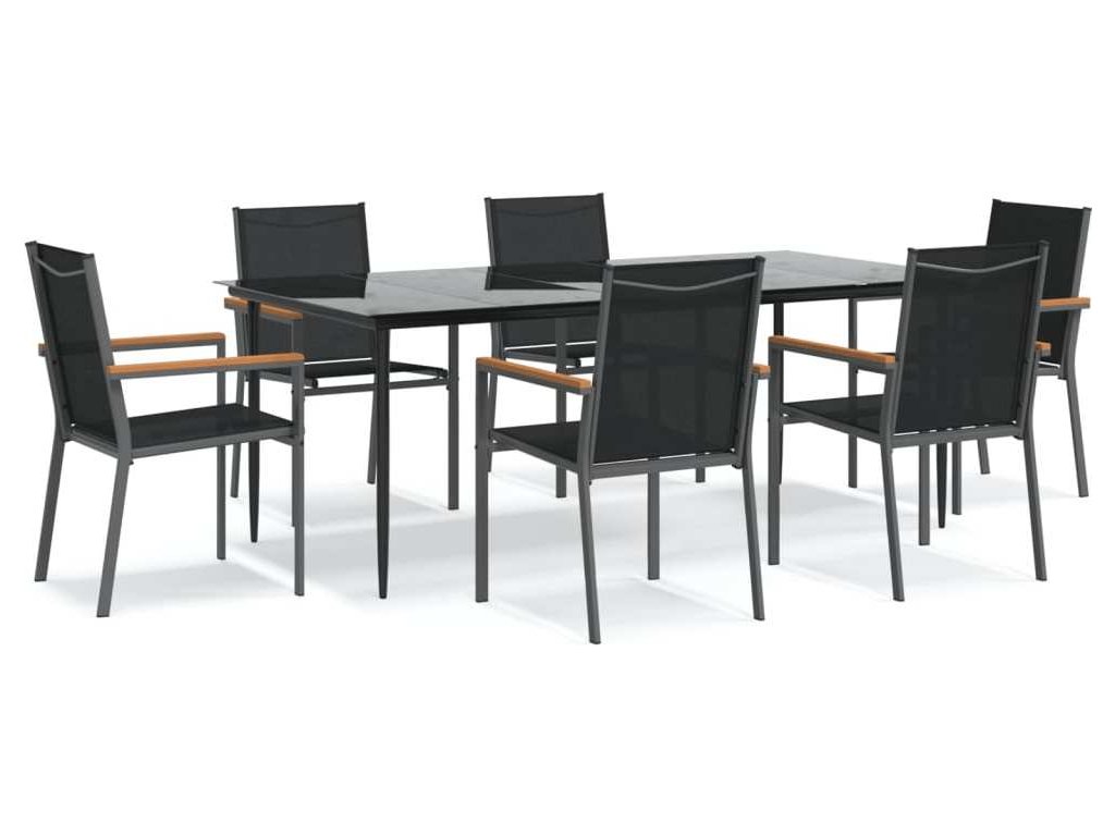 7dílný zahradní jídelní set černý textilen a ocel [3187039]