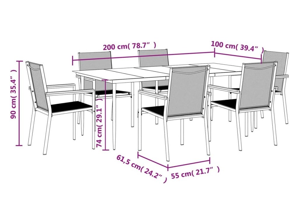 - Rozměry: 200 x 100 x 74 cm (D x Š x V)