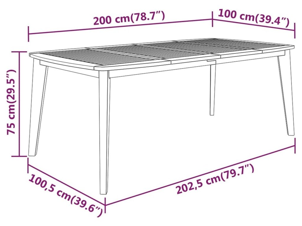 - Celkové rozměry stolu: 202,5 x 100,5 x 75 cm (D x Š x V)