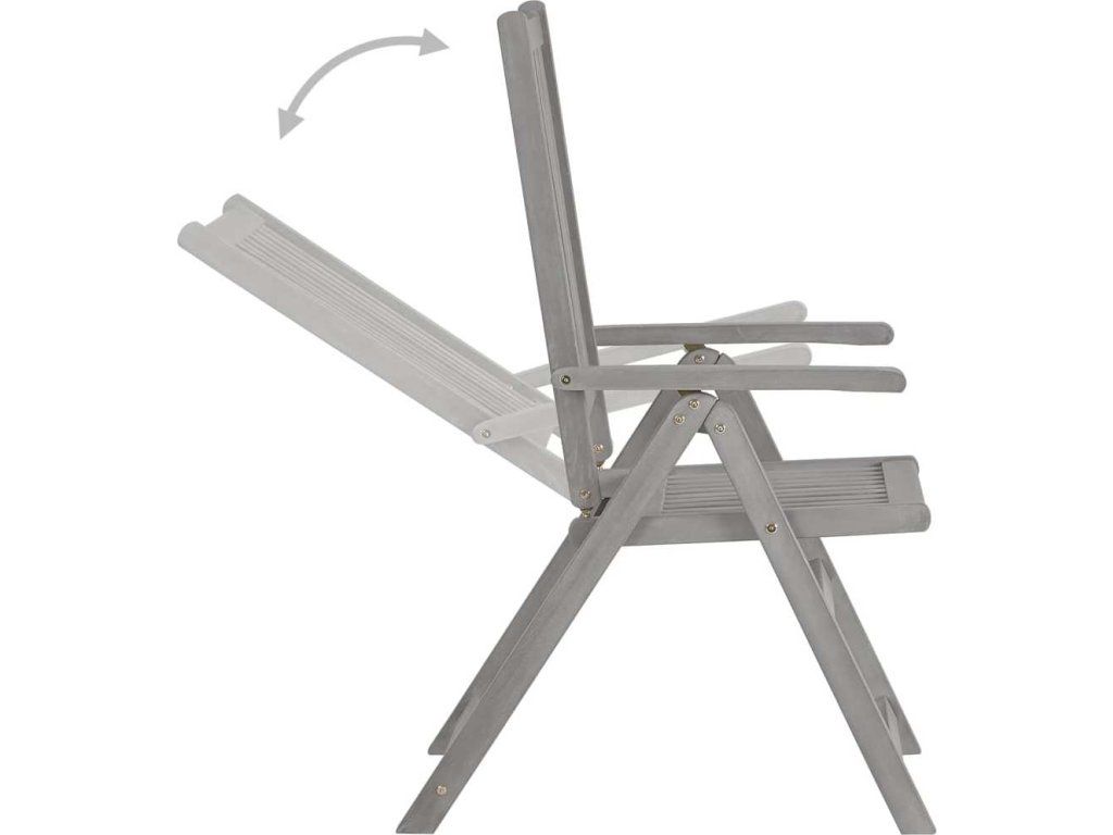 - Nastavitelná a skládací židle: Zahradní židli lze nastavit do 5 poloh, a tak vám při sezení zajistí optimální pohodlí. Pokud jídelní židle právě nepoužíváte, můžete je složit, aby vám zbytečně nepřekážely.