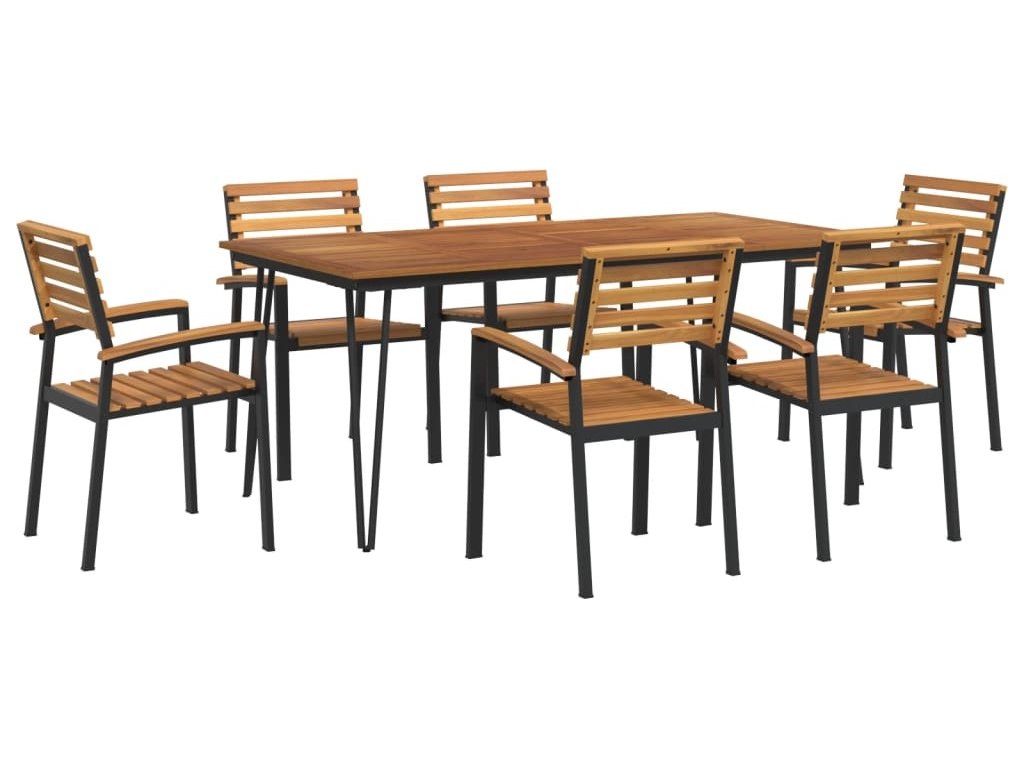 7dílný zahradní jídelní set masivní akáciové dřevo a kov [3155419]
