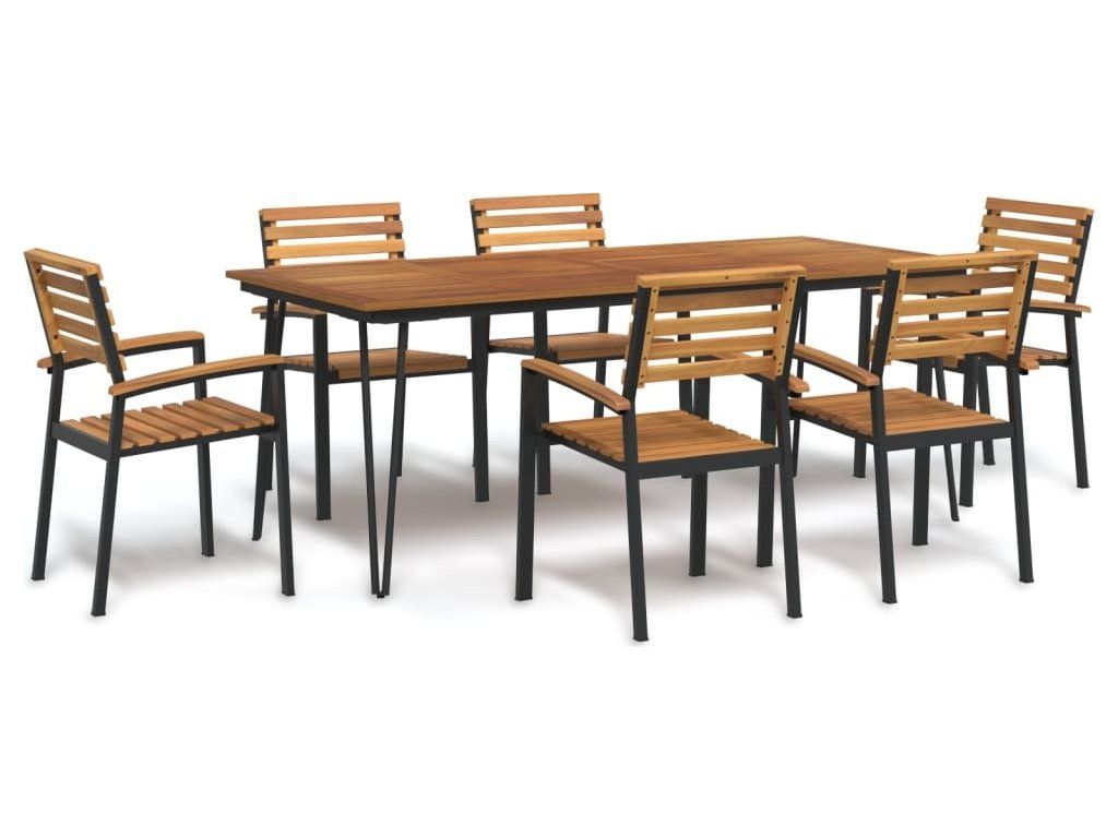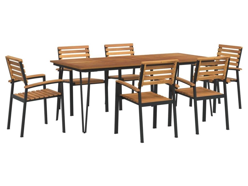 7dílný zahradní jídelní set masivní akáciové dřevo a kov [3155420]