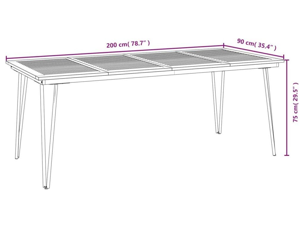 - Rozměry zahradního stolu: 200 x 90 x 75 cm (Š x H x V)