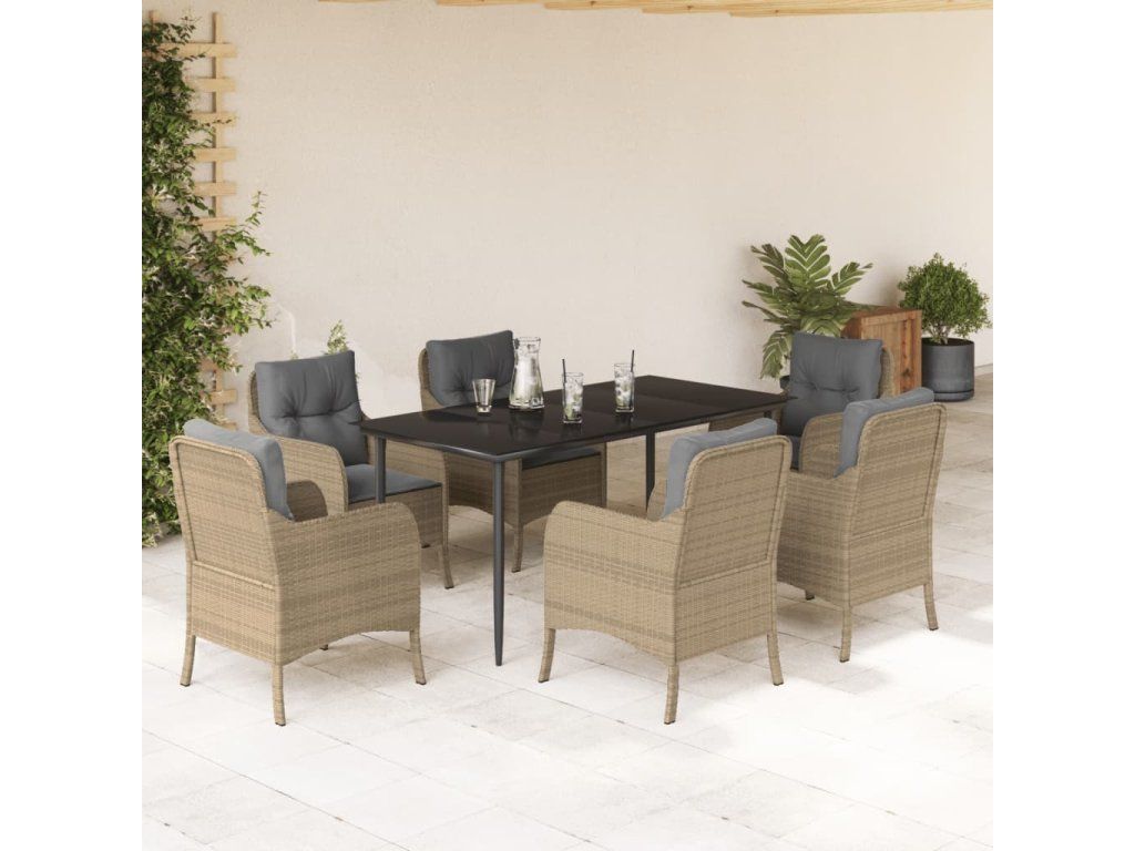 7dílný zahradní jídelní set s poduškami béžový polyratan [3211980]