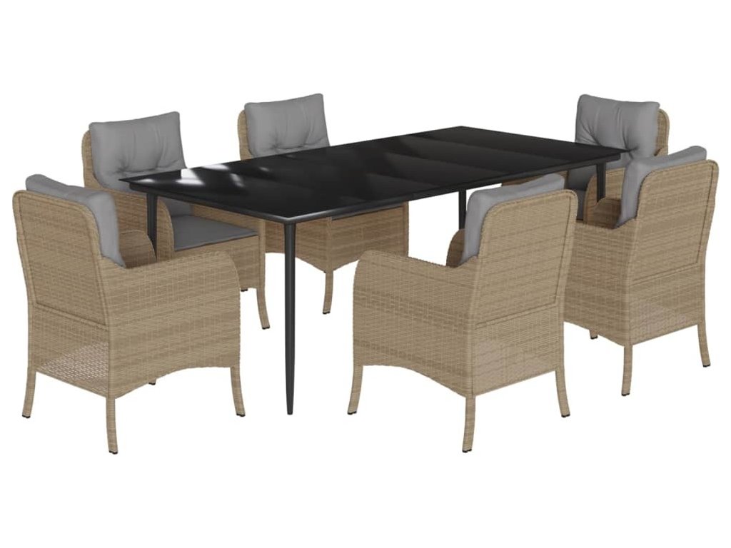 7dílný zahradní jídelní set s poduškami béžový polyratan [3211981]