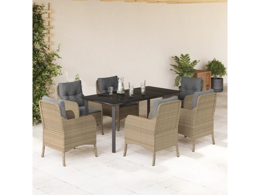 7dílný zahradní jídelní set s poduškami béžový polyratan [3211987]