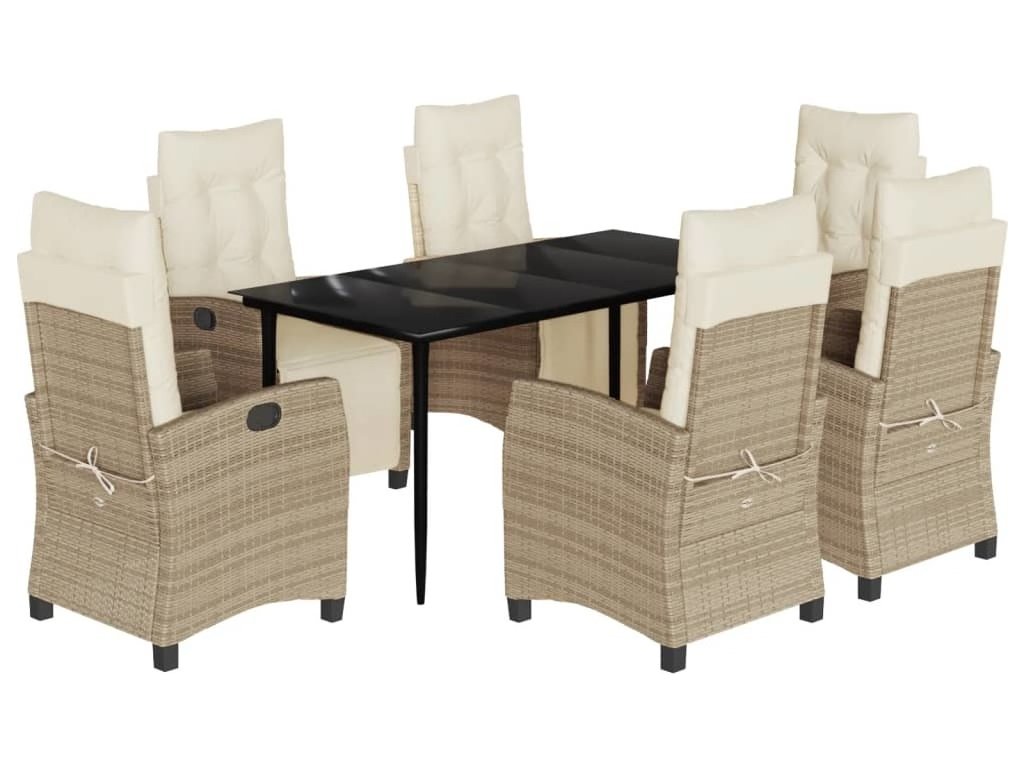 7dílný zahradní jídelní set s poduškami béžový polyratan [3213006]