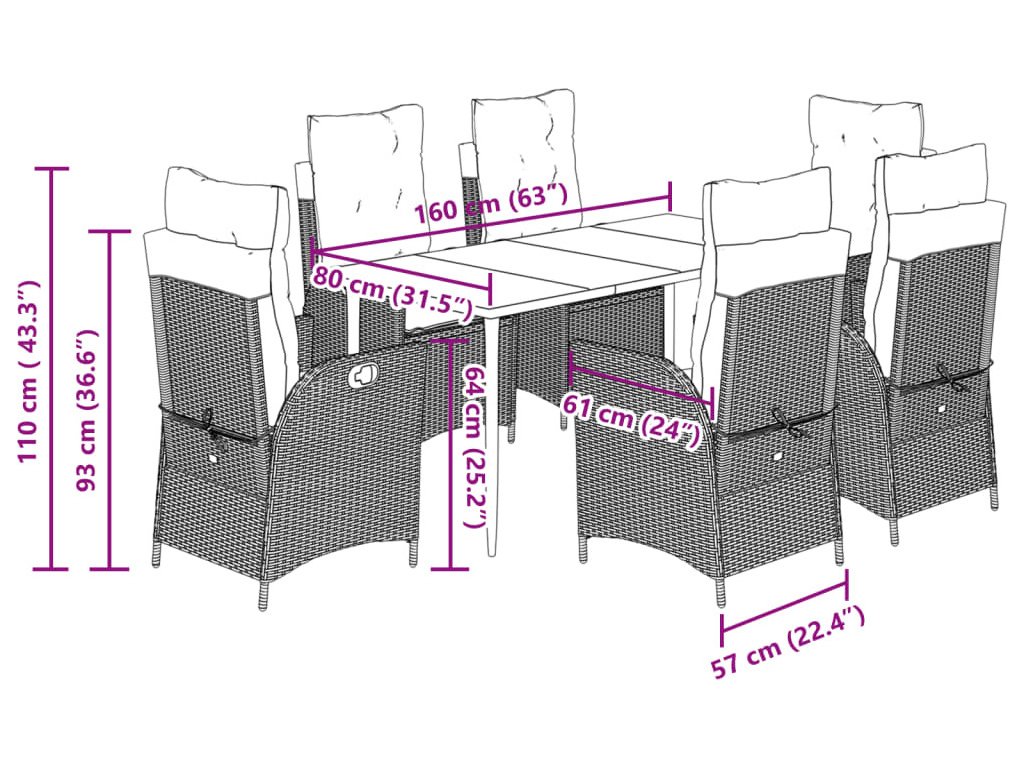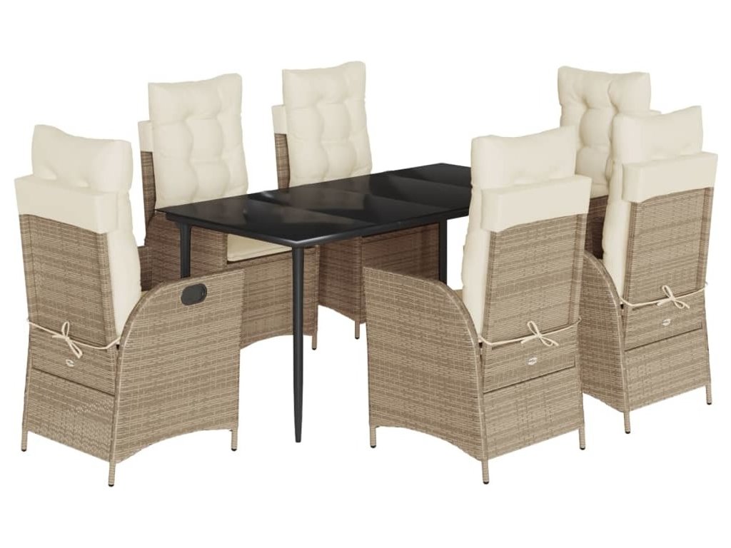 7dílný zahradní jídelní set s poduškami béžový polyratan [3213239]