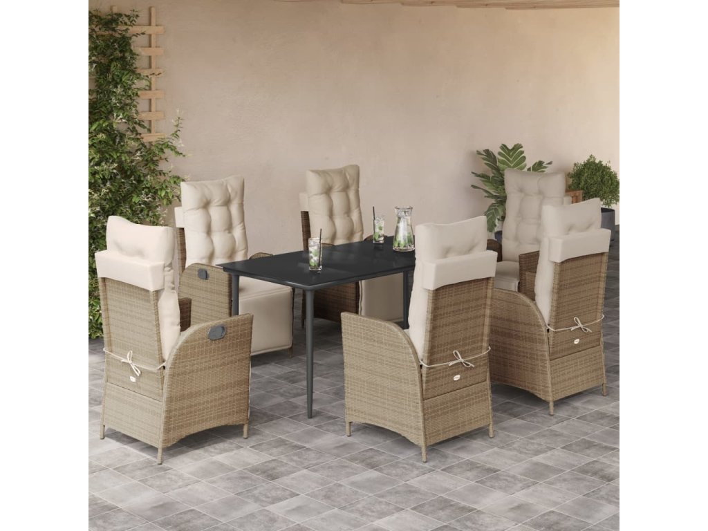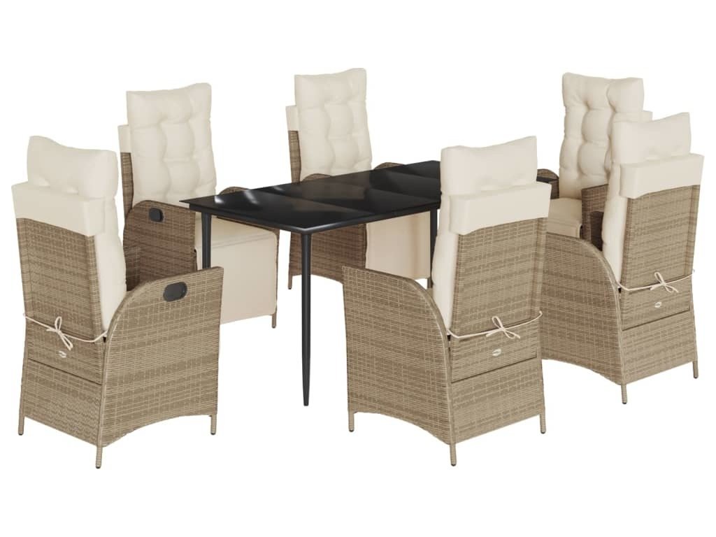 7dílný zahradní jídelní set s poduškami béžový polyratan [3213438]