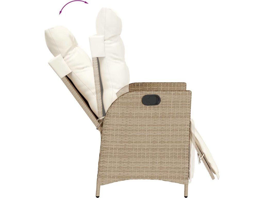 - Nastavitelné opěradlo a opěrka nohou: Tato zahradní židle je opatřena rukojetí. Zatáhnutím za ni můžete opěradlo a opěrku nohou nastavit do libovolné polohy. Stejně tak je můžete rychle vrátit do původní pozice.