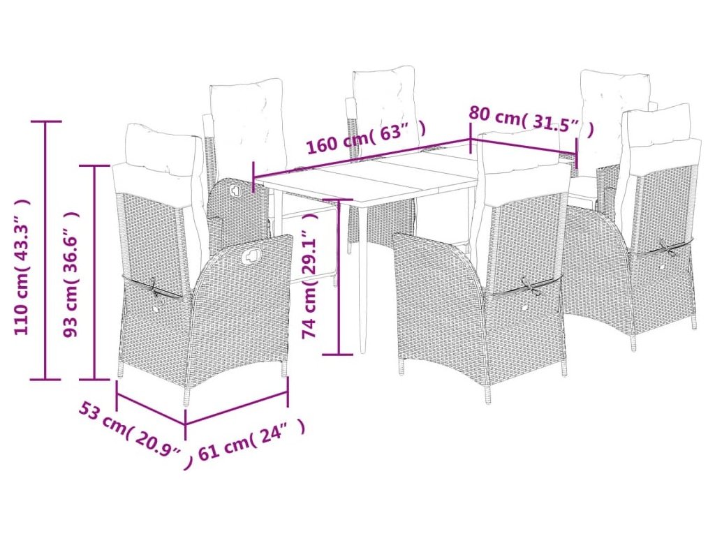Tento zahradní jídelní set je skvělou volbou pro stolování pod širým nebem nebo jen tak pro odpočívání na zahradě, dvorku či terase.