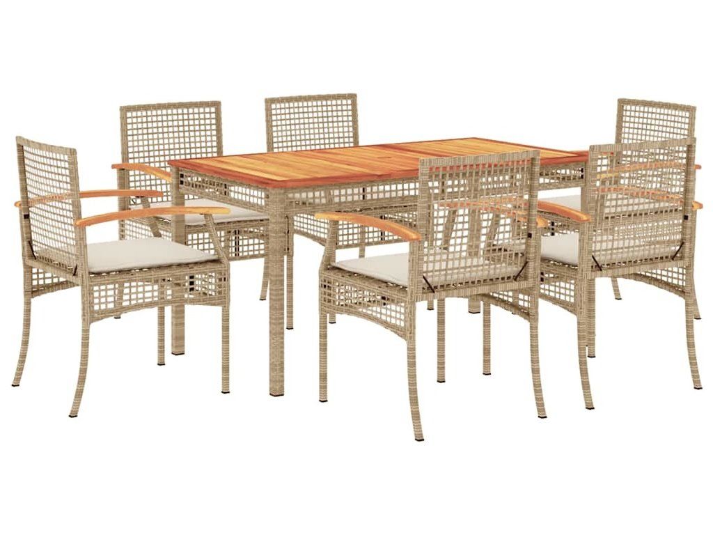 7dílný zahradní jídelní set s poduškami béžový polyratan [3213581]