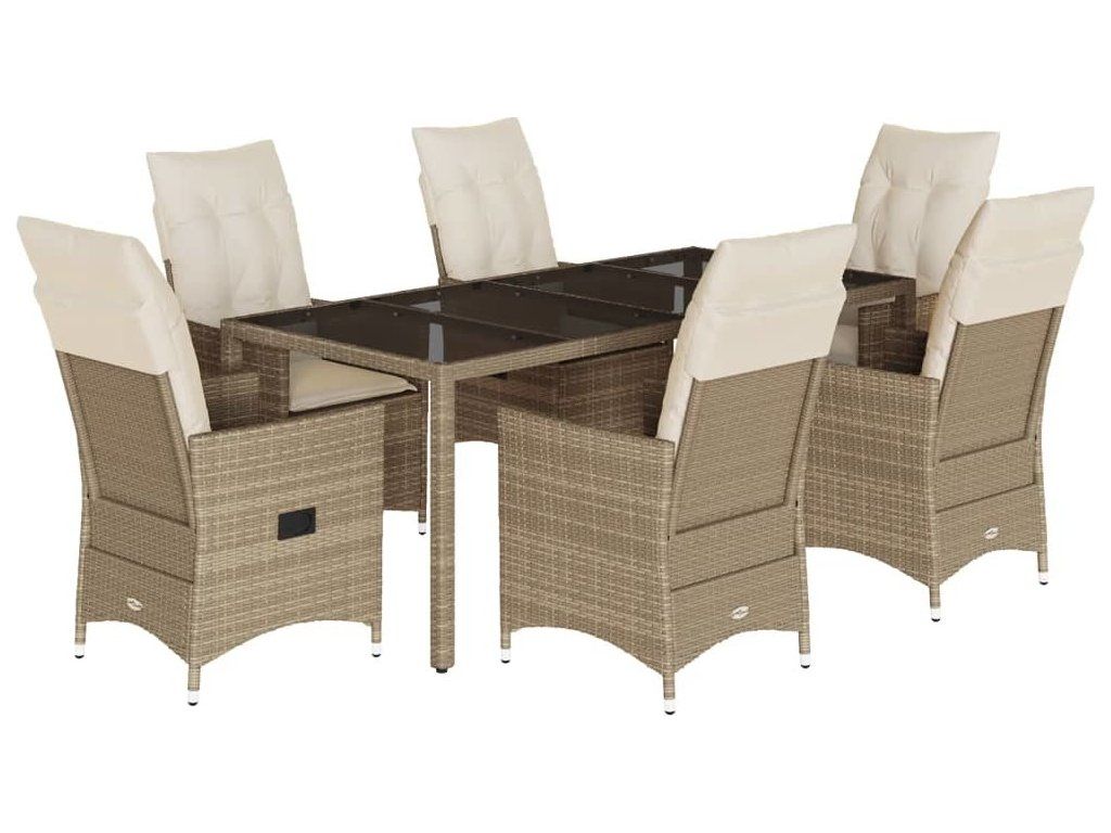 7dílný zahradní jídelní set s poduškami béžový polyratan [3276805]