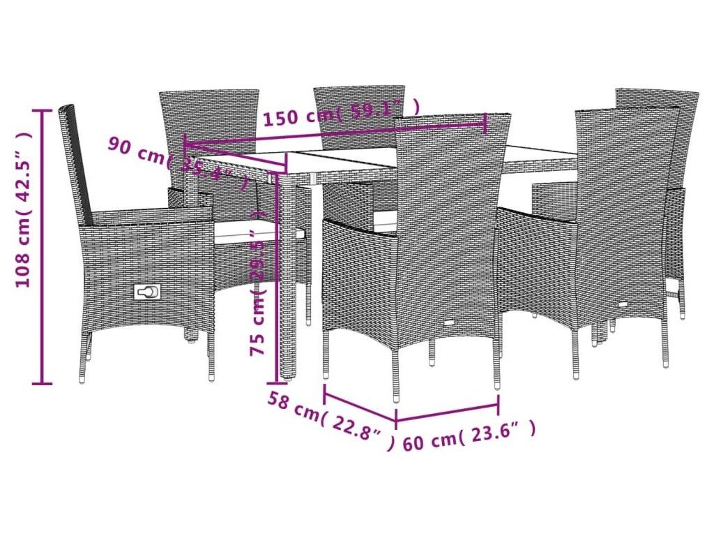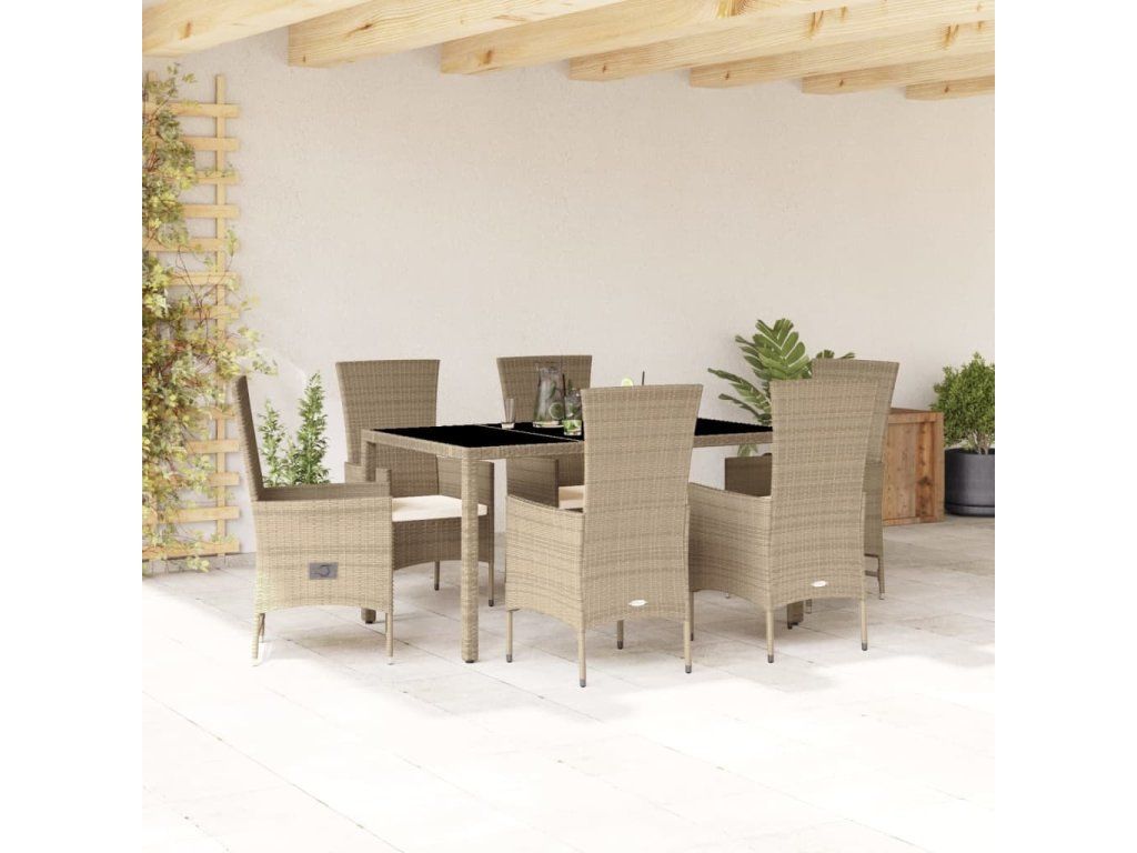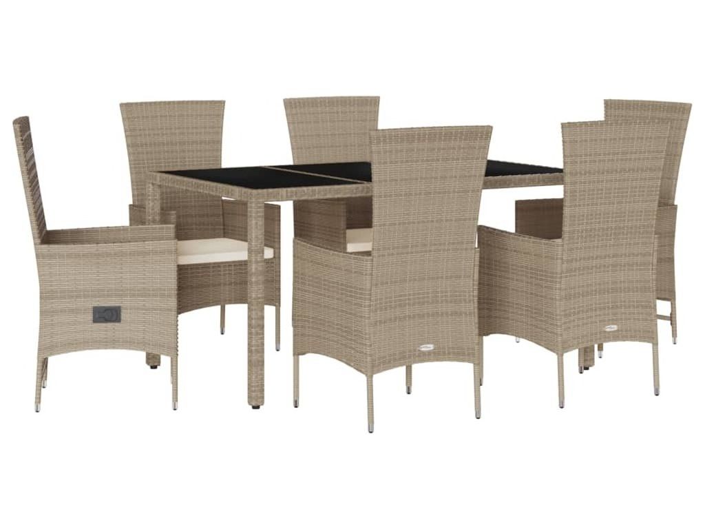7dílný zahradní jídelní set s poduškami béžový polyratan [3277577]