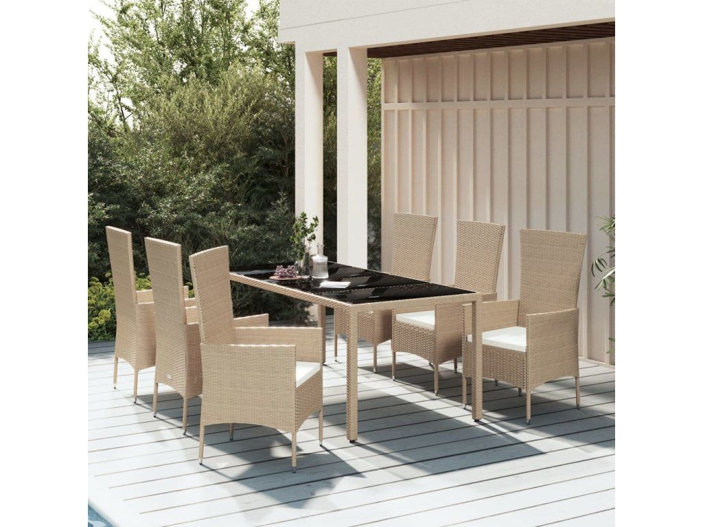 7dílný zahradní jídelní set s poduškami béžový polyratan [3157563]