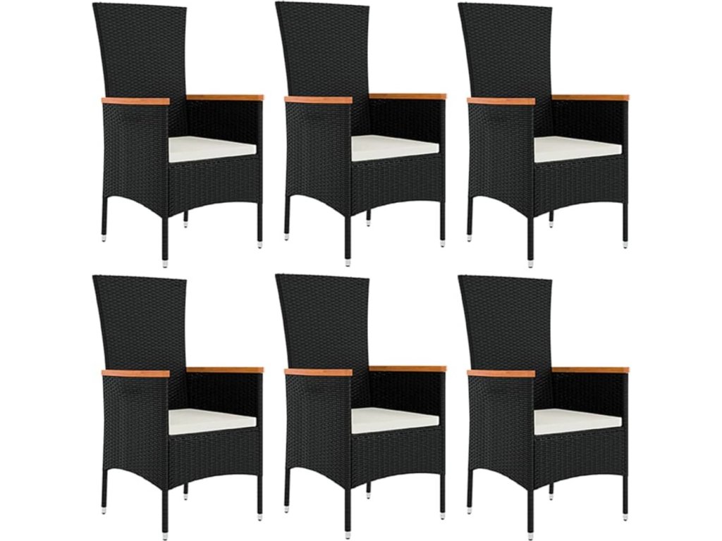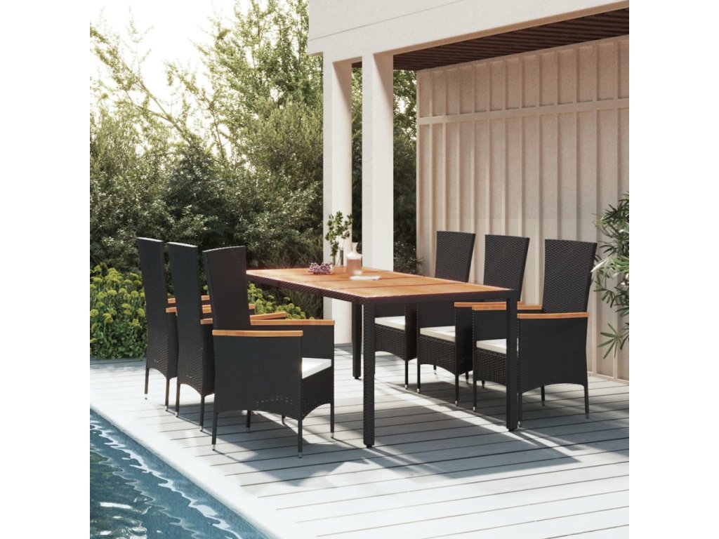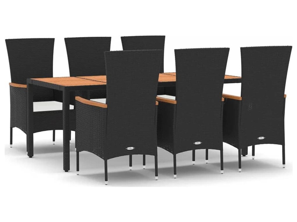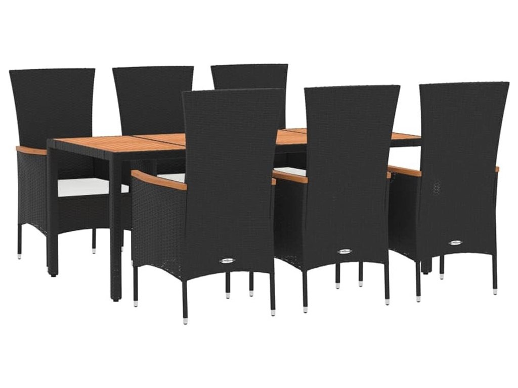 7dílný zahradní jídelní set s poduškami černý polyratan [3157532]